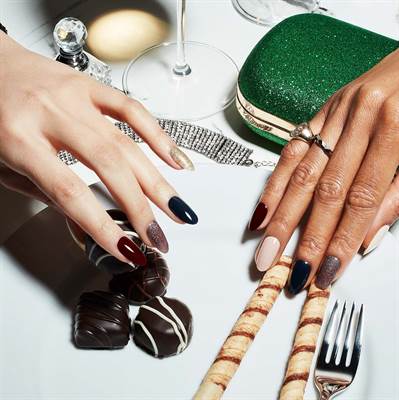 La collezione CND Party Ready comprende 6 nuance: Glitter Sneakers, un oro shimmer e brillante, Signature Lipstick, un profondo e drammatico rosso elegante, Silk Slip Dress, un rosa pallido delicato, White Button Down, un bianco invernale tiepido e romantico, Statement Earrings, un malva glitterato sgargiante e High Waisted Jeans, un blu profondo.